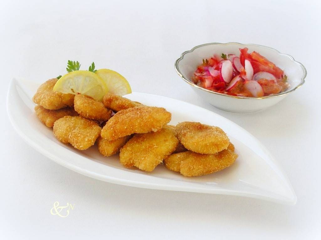 Servieren Sie zu den Chicken Nuggets selbst gemachte Dips und Saucen.
