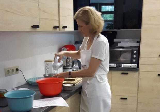 …nur das Backrohr leider nicht heiß – vor lauter Tratschen haben wir nämlich auf's Vorheizen vergessen! "In fremden Küchen find ich's immer ein bissl komisch zu kochen", gesteht unser Ehrengast lachend. Da hat sie nicht unrecht – top ausgestattete Redaktionsküche hin oder her. "Das ist jetzt ein bissl gefährlich – normalerweise, wenn man's 'fluffy' macht, sollte man es gleich ins Rohr tun…"