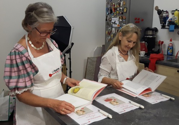 …schlägt die tüchtige Autorin nach unserem kleinen Begrüßungsplausch munter vor. Die Neugier der Gäste auf das "salomonische" Kochbuch ist indes groß: "Dürfen wir gleich reinschmökern nebenbei?" Unbedingt! Erfreut blättern unsere glücklichen Gewinnerinnen also durch Martina Salomons Rezepte- und Anekdotensammlung: "Die Geschichten dazu find ich gut!", lobt Brigitta, Leopoldine fügt hinzu: "Ja, es ist lieb zum Anschauen und zum Lesen! Wenn nur Rezepte drin sind, das schaut man eh kaum mehr an. Wenn man was sucht, gibt’s eh das Internet, das geht doch viel schneller!"