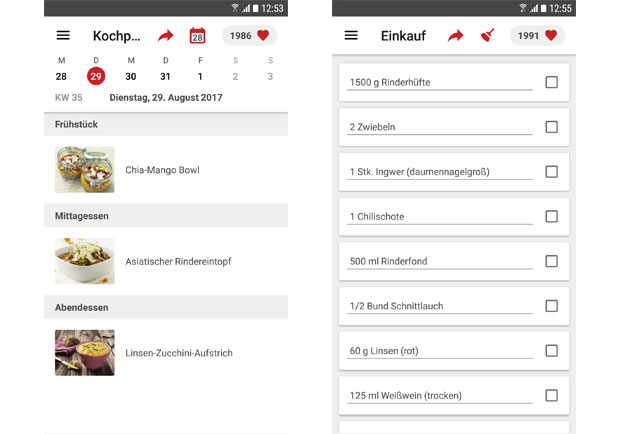 Hilfreich bei der Planung ist auch ein Kochplan und eine Einkaufsliste. Diese können zum Beispiel über unsere KochApp erstellt und auch mit anderen Mitgliedern des Haushalts geteilt werden.