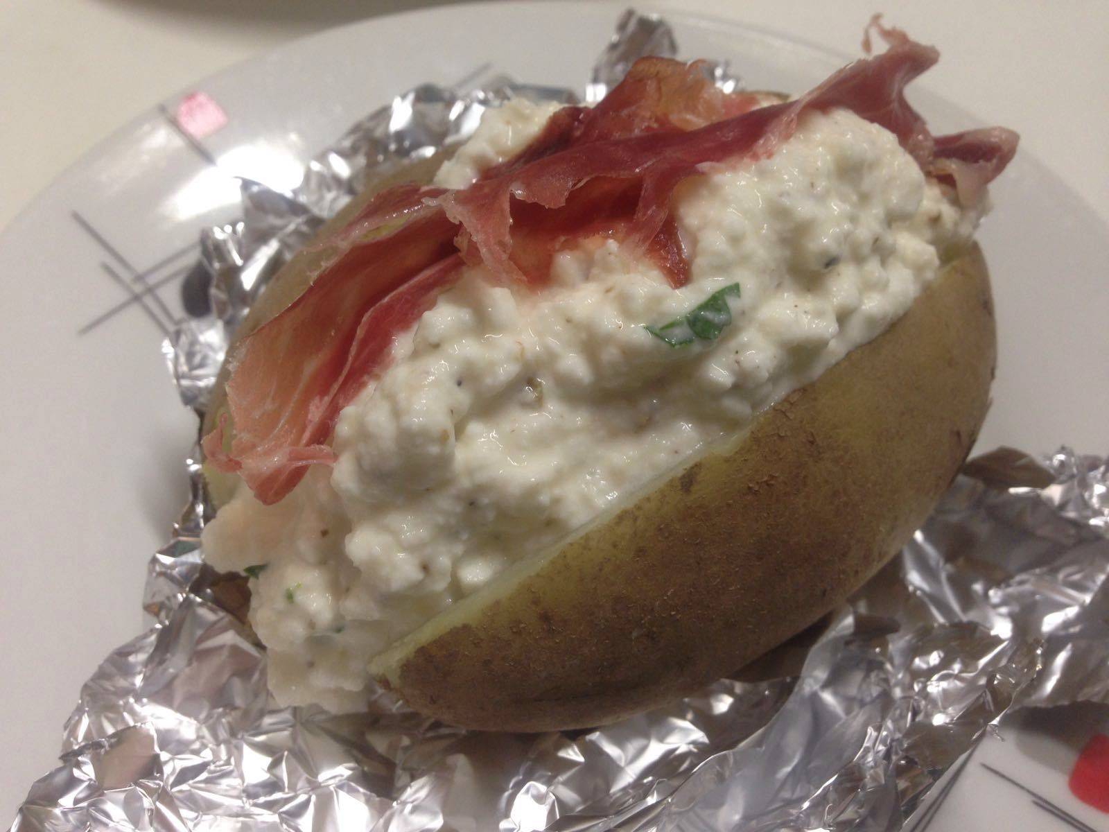 Nach Belieben können Sie die Ofenkartoffel noch mit gebratenen Garnelen oder gebratenem Hühnerfleisch füllen.