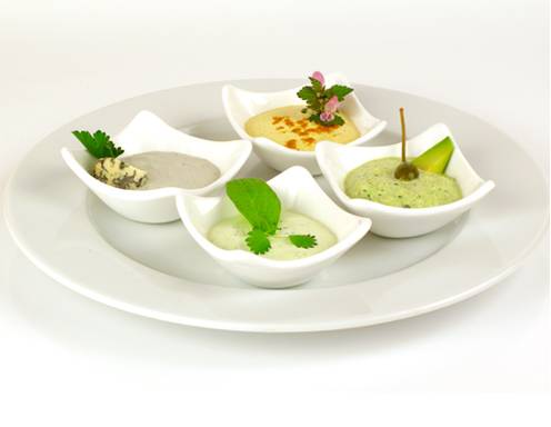 1. Für den Kräuter Dip die Eier hart kochen und anschließend fein würfeln, Gurken fein würfeln, Zwiebeln und Kräuter fein hacken.